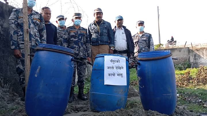 यता फेला पारेको मासुलाई सशस्त्र प्रहरी बलको प्रस्तावित सीमा सुरक्षा गुल्म, हरिपुरको परिसरमा खाल्डो खनेर सरोकारवाला निकायका प्रतिनिधिहरूको रोहबरमा सडाउने प्रक्रियाबाट नष्ट गरिएको छ। बिना प्रमाण र स्वास्थ्य परीक्षणको अभावमा मासु मानव उपभोगका लागि अयोग्य ठहर गरिएको जनाइएको छ।