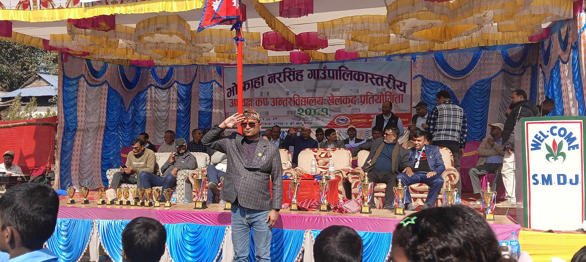 खेलकुद समितिका अध्यक्ष रमेशचन्द्र तिम्सिनाले अनुशासन, सहकार्य, र स्वस्थ जीवनशैलीको विकासका लागि खेलकुदलाई आधार मान्नुपर्नेमा जोड दिए।