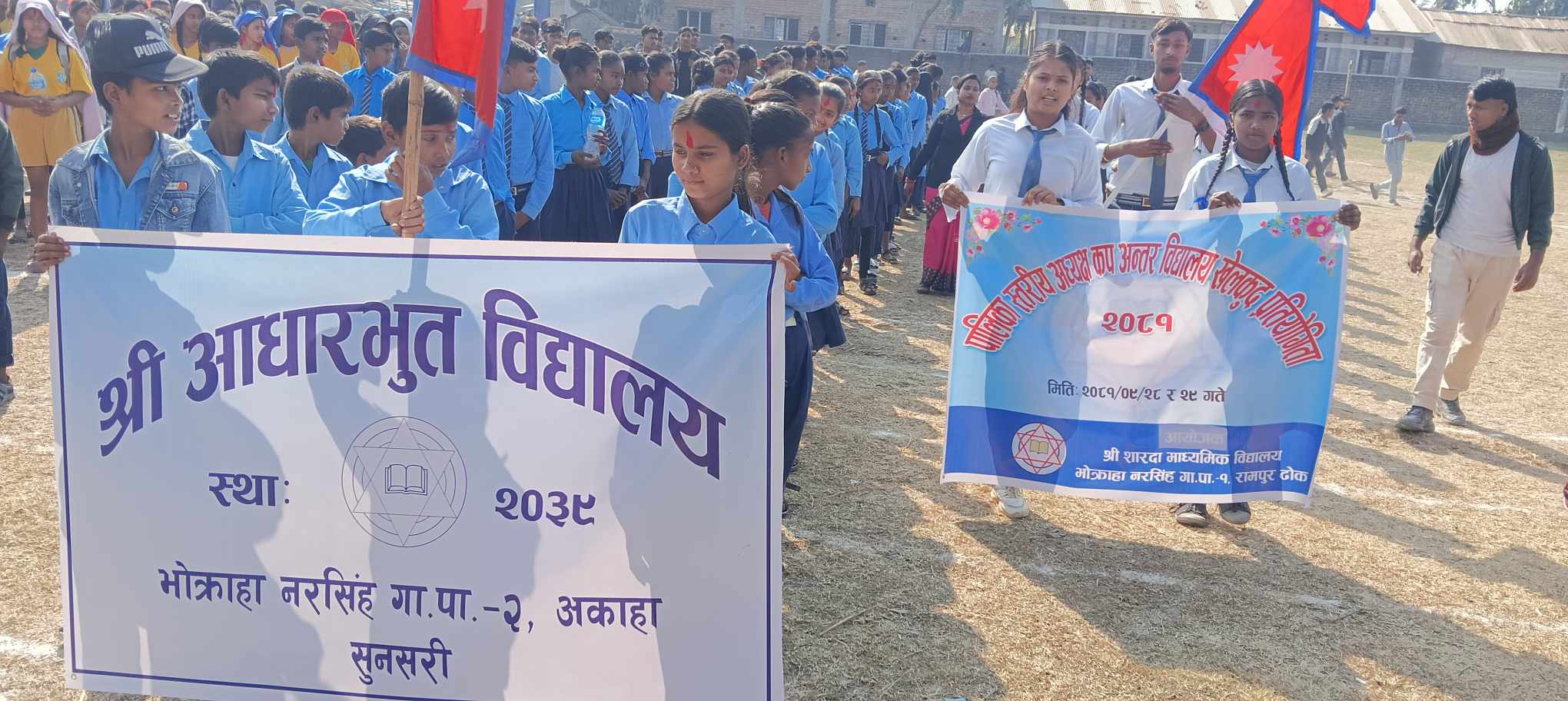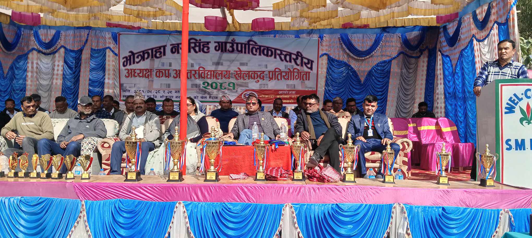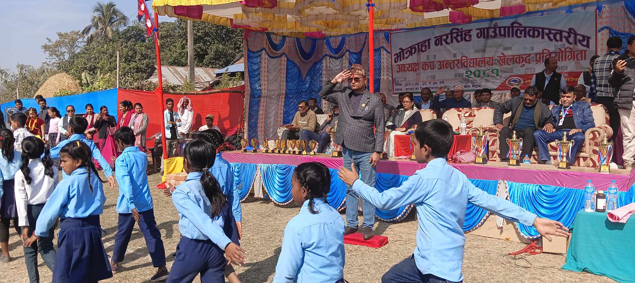दिपेन्द्र यादव/इनरुवा – सुनसरीको भाेक्राहा नरसिंह गाउँपालिकामा अध्यक्ष कप अन्तर विद्यालय खेलकुद प्रतियोगिता आजदेखि सुरू भएको छ। शारदा माध्यमिक विद्यालय, वडा नम्बर १ को खेल मैदानमा उद्घाटन गरिएको यस प्रतियोगिताले विद्यार्थीहरूको शारीरिक र मानसिक विकास गर्दै विद्यालयहरूबीच आपसी सद्भावको वातावरण सिर्जना गर्ने आयाेजना गरिएको बताए ।