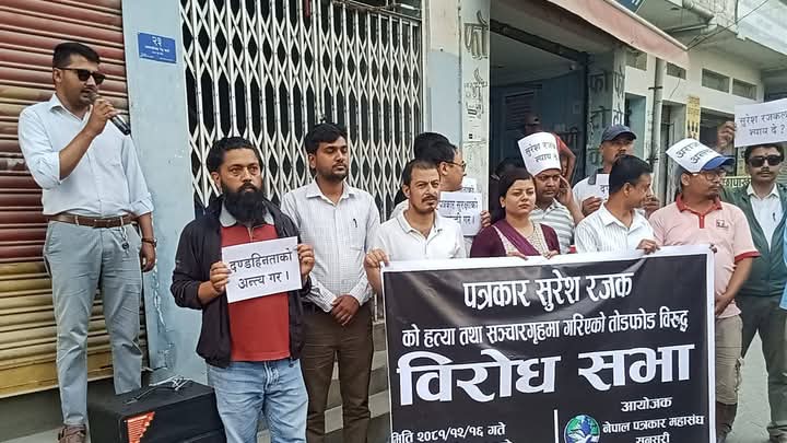सुनसरी – काठमाडौंका पत्रकार सुरेश रजकको हत्या तथा आमसञ्चारमाध्यममाथि भएका आक्रमणको विरोधमा सुनसरीका पत्रकारहरूले प्रदर्शन गरेका छन्। नेपाल पत्रकार महासंघ, सुनसरी शाखाको अगुवाइमा शनिबार इटहरीको मुख्य चोक हुँदै इटहरी उपमहानगरपालिका कार्यालयसम्म पुगेर कोणसभा गरिएको हो।