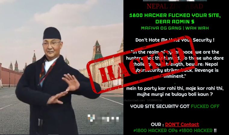 वेबसाइटको मुख्य पेज खोल्दा ‘NEPAL ZINDABAD’, ‘1800 HACKER FUCKED YOUR SITE, DEAR ADMIN $’, ‘MAFIYA OG GANG | WAH WAH’ जस्ता टेक्स्ट देखिन्छ ।
