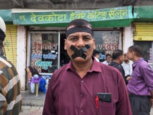 प्रेस युनिय नेपालको नेतृत्वमा आइतबार विहान देवकोटाचौकदेखी हाटखोलामा सम्म करिब १ किलो मिटर ‘उल्टो हिडेर ’ विरोध प्रदर्शन गरेका हुन् ।