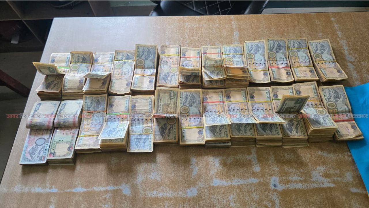 मोटरसाइकलमा सवार विराटनगर–१८ बस्ने ४१ वर्षीय बिरेन्द्र साहको साथबाट १४ लाख ५० हजार रुपैयाँ बरामद गरिएको प्रहरीले जनाएको छ। बरामद रकममध्ये १,००० रुपैयाँका २८४ थान र ५०० रुपैयाँका २,३३२ थान नोट रहेको विवरण सार्वजनिक गरिएको छ।