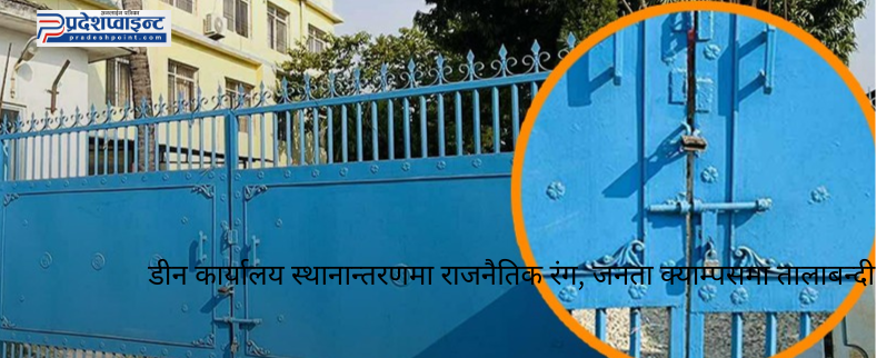 विराटनगर । पूर्वाञ्चल विश्वविद्यालयको डीन कार्यालय स्थानान्तरणको विषय राजनीतिक विवादमा फस्दै जनता क्याम्पस परिसर तालाबन्दीमा पुगेको छ। विश्वविद्यालयले डीन कार्यालयलाई गोठगाउँस्थित केन्द्रीय कार्यालयमा सार्ने निर्णय गर्दै केही सामान सारिसकेपछि कांग्रेस–माओवादी निकट विद्यार्थी संगठनले विरोधस्वरूप तालाबन्दी गरेका हुन्।