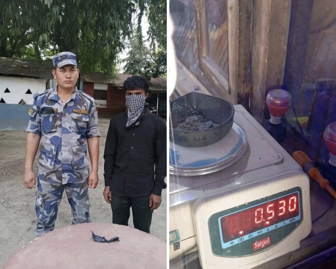 बरामद पदार्थ कालो प्लास्टिकमा बेरेर लुकाइएको अवस्थामा फेला परेको र प्लास्टिकसहित तौल गर्दा ०.५३० ग्राम रहेको जनाइएको छ।